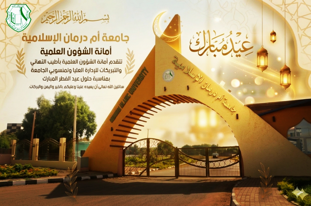 تتقدم أمانة الشؤون العلمية بأطيب التهاني والتبريكات للإدارة العليا ولمنسوبي الجامعة بمناسبة حلول عيد الفطر الم